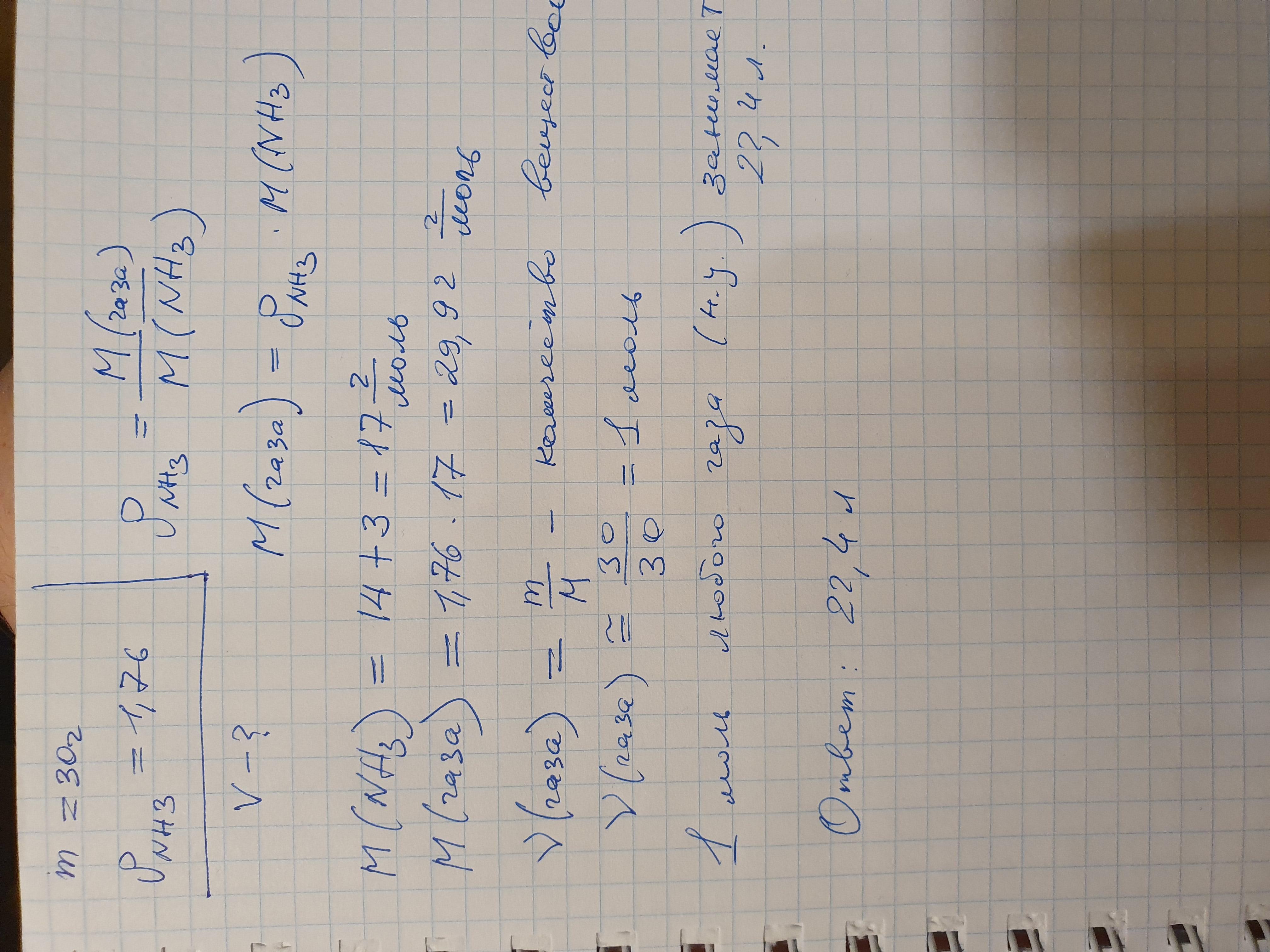 Найдите объем 30 г газа, если его относительная плотность по аммиаку (NH3) равна 1,76