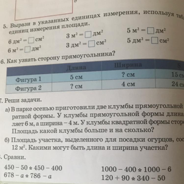 у первой фигуры, как и у второй, площадь равна произведению длины на ширину прямоугольника, т.к. неизвестна ширина, то площадь делим на длину, получаем 15/5=3/см/