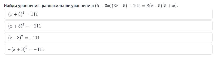 если спростить даное уровнония выйдет х²+16х+175=0 и способом перебора нам подходит именно (х+8)²=-111