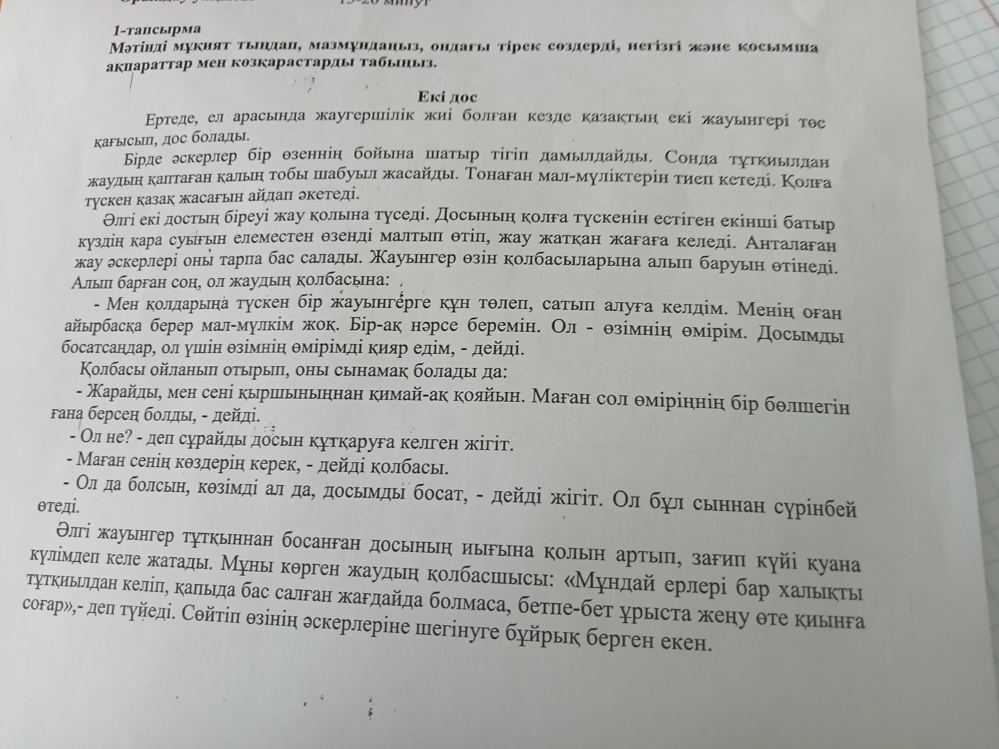 2 тоқсан бойынша жиынтық бағалауға арналған тапсырмалар Бөлім Сүйіспеншілік пен достық