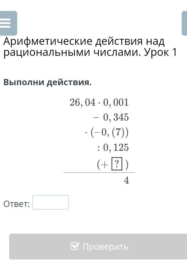 Арифметические действия над рациональными числами. Урок 1 Выполни действия. Ответ: Назад Проверить .Плмогите срочнооо