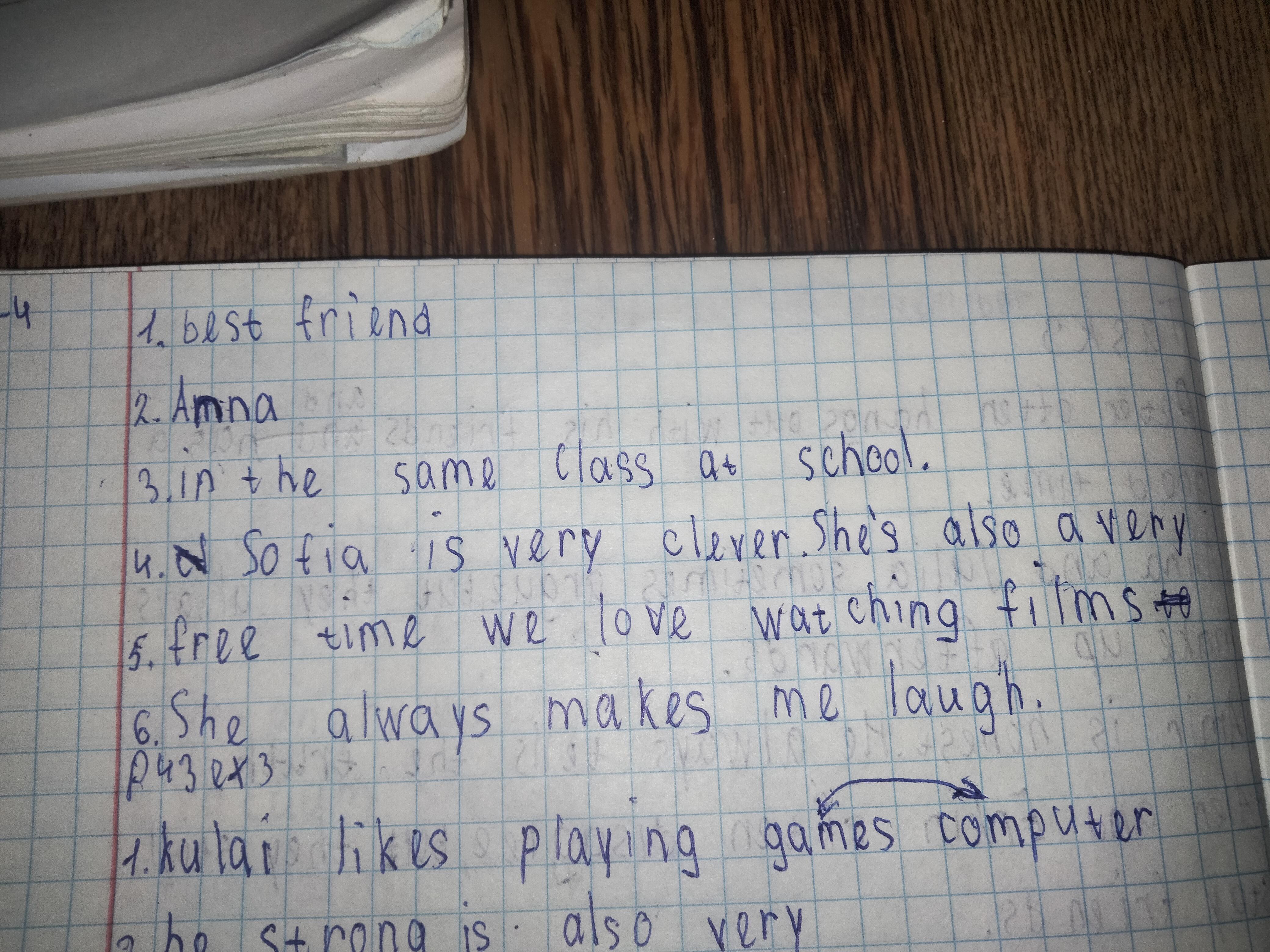 1)my best friend 2)Sofia 3)she knows her from shool 4)Sofia is very clever and funny 5)They love watching films to gether 6) не знаю