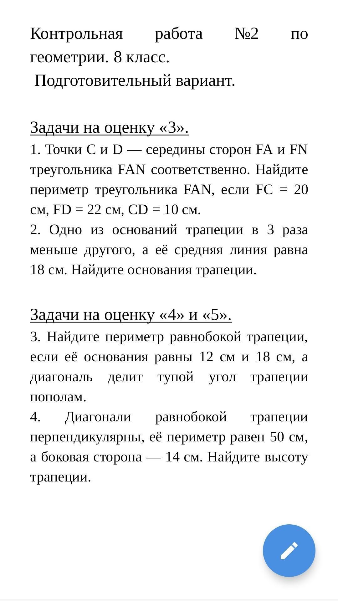 2. Дано: ABCD - трапеция. ВС -х см, AD - 3х см. МN - ср линия = 18 см.
