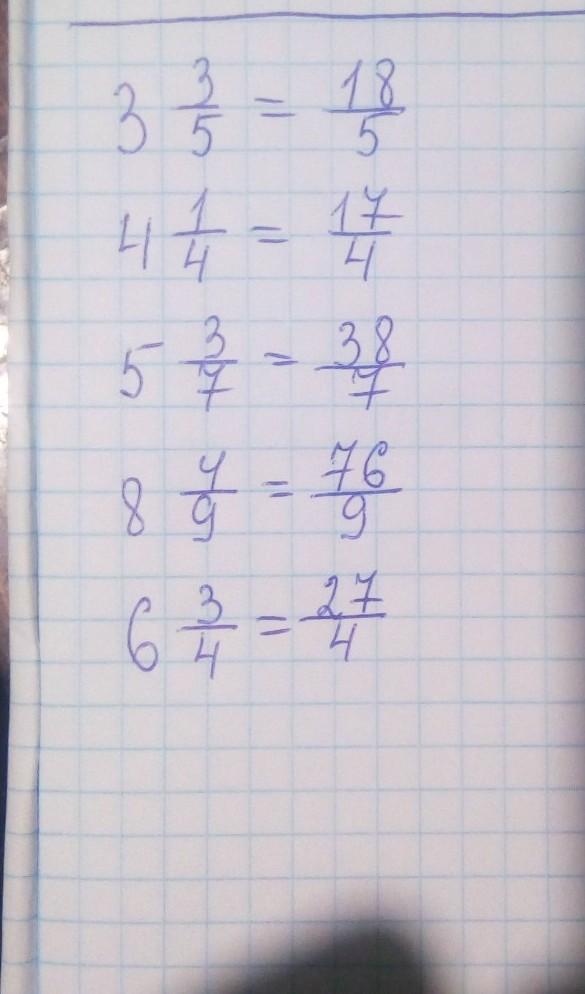 число перед дробью умножаем на знаменатель затем к получившемуся прибавляем числитель.