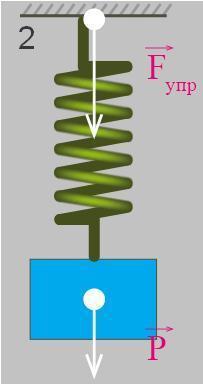Ниже приведены схематические изображения пружины с подвешенным к ней грузом, а стрелками указаны силы их взаимодействия — P→ и F→уnp.