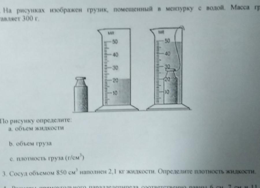 2. На рисунках изображен грузик, помещенный в мензурку с водой. Масса груза