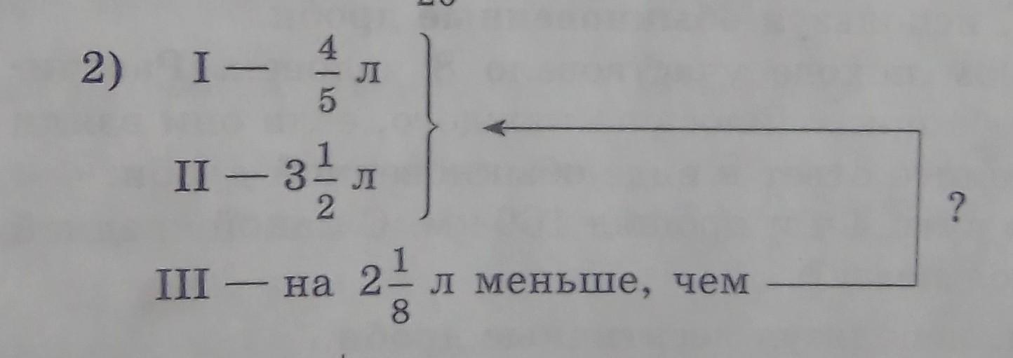вот смотри 1 - 4/5 л 2 - 3 1/9 л 3 - на 2 1/8 л меньше,чем остальные