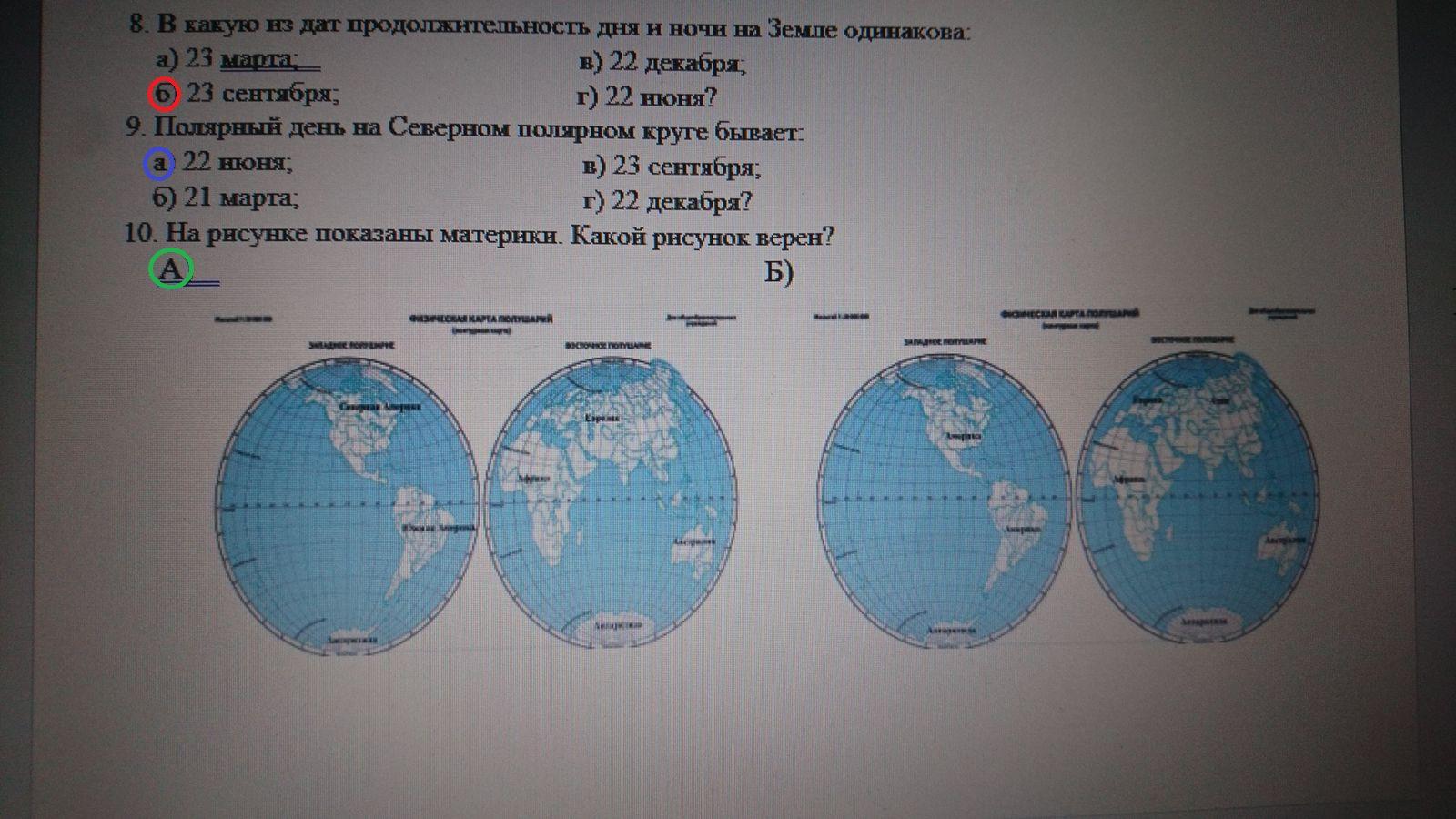 Так как по условию задания нас интересуют именно материки, то верным является рисунок под А). Если внимательно присмотреться к рисунку под Б), то можно увидеть, что на карте обозначены части света, а не материки. Вариант А).