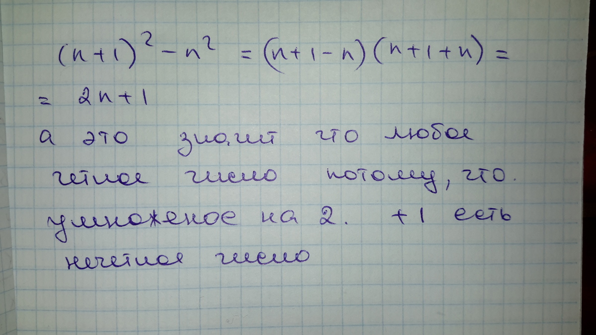 Докажите ,что при любом натуральном значении n значение выражения (n+1)²-n² есть нечетное число.