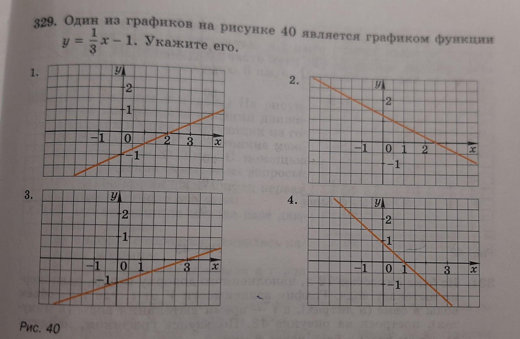 даю 50 баллов. Один из графиков на рисунке 40 является графиком функции у=1/3х-1. Укажите его.