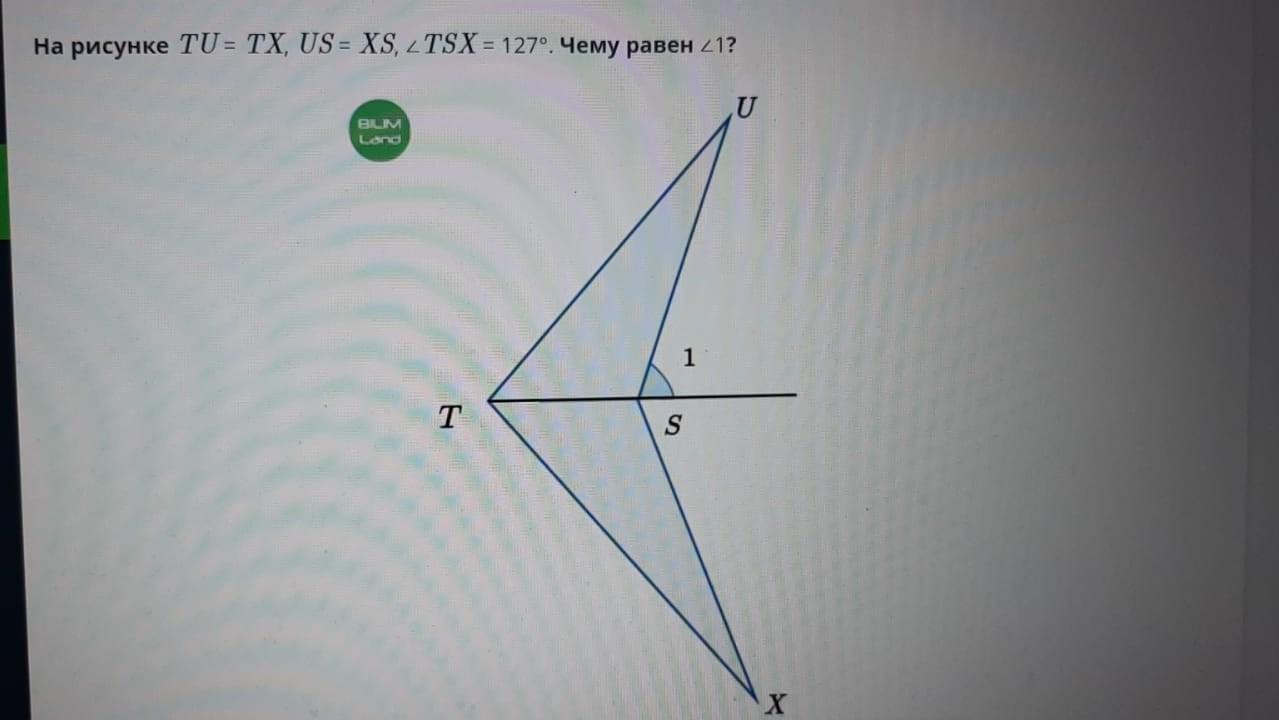 TS-Общая сторона, значит труегольники TUS и TXS равны по трем сторонам, следовательно угол TSU=TSX=127°