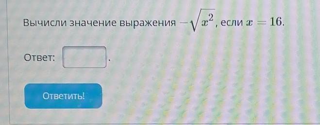 Объяснение: квадрат у Икса и корень сокращаются,остаётся -x,мы знаем что x=16=> Ответ -16
