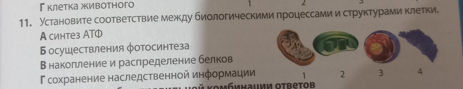 11. Установите соответствие между биологическими процессами и структурами клетки.
