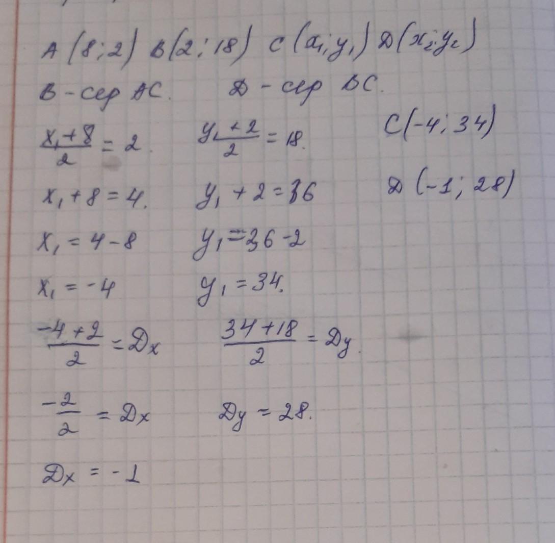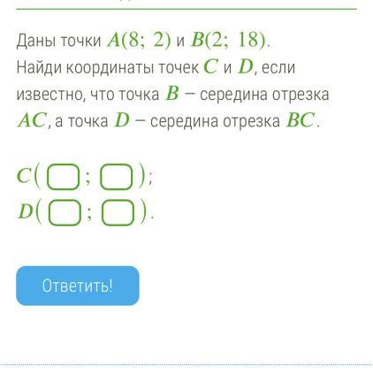 Найди координаты точек и , если известно, что точка — середина отрезка , а точка — середина отрезка .