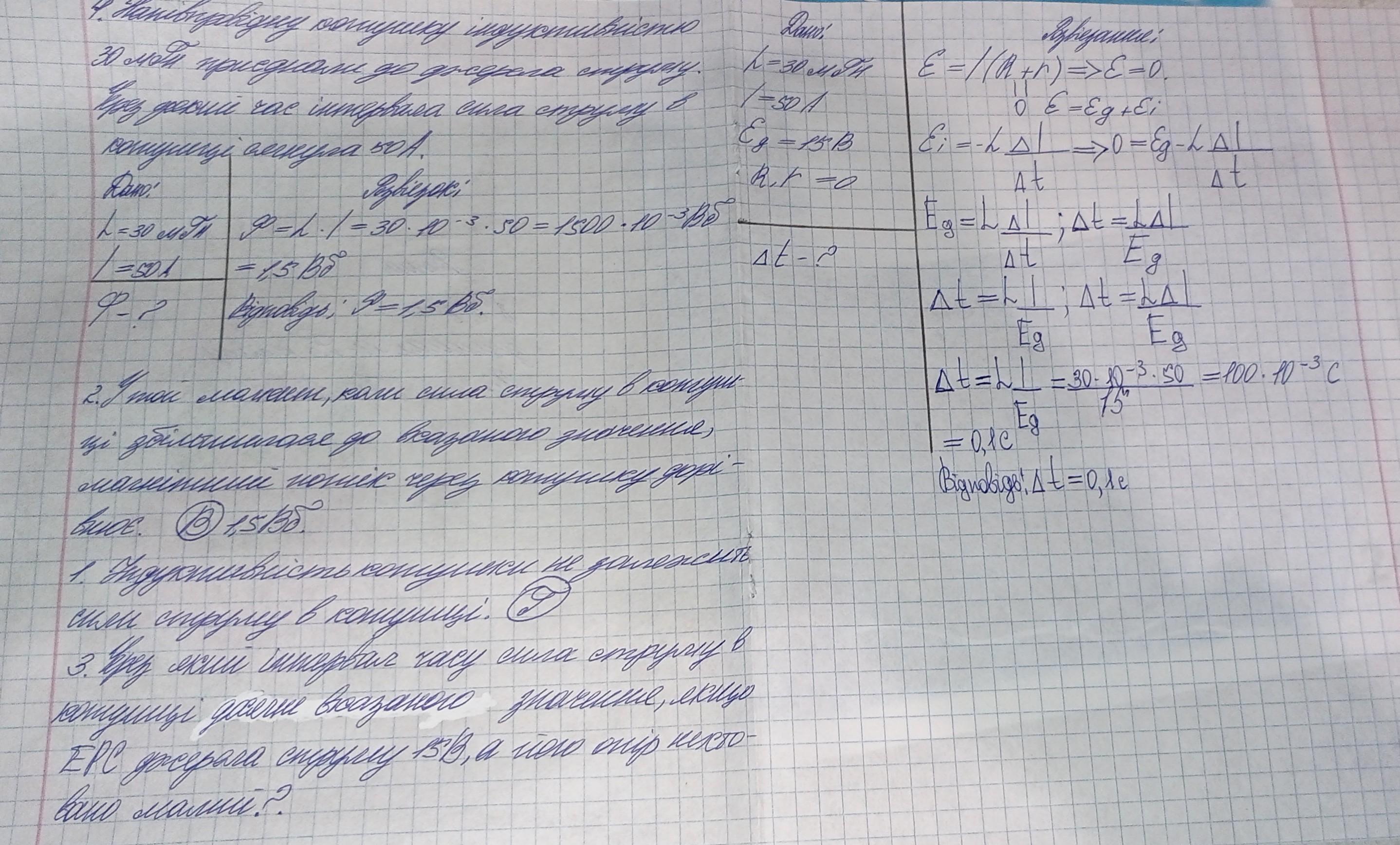 3. (3 бали) Через який інтервал часу сила струму в котушці досягне вказано- го значення, якщо EPC джерела струму 15 В, а його опір нехтовно малий Вважайте, що сила струму змінюється рівномірно. І ми наприкінці підпинника по