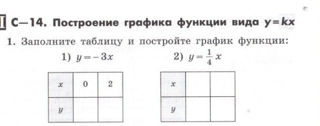 Заполните таблицу и постройте график функции: 1)y=-3x 2)y=-1/4x *Дам максимум балов!*