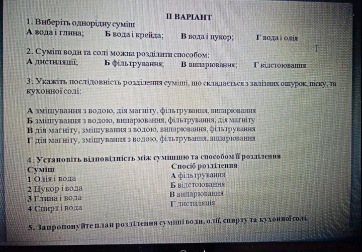 (отстаиваем воду, получаем воду и масло. Затем выпариваем соль, дистиллируем сахар (в конечном же итоге нужно получить воду?))