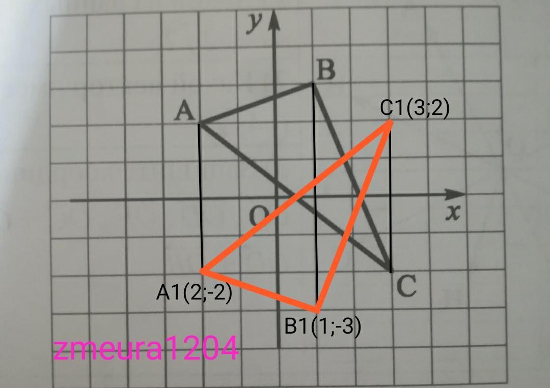 Постройте треугольник A1 B1 C1 симметричный треугольнику ABC относительно оси Ох, и определите координаты точек A1, В1, С1. Сделайте вывод.