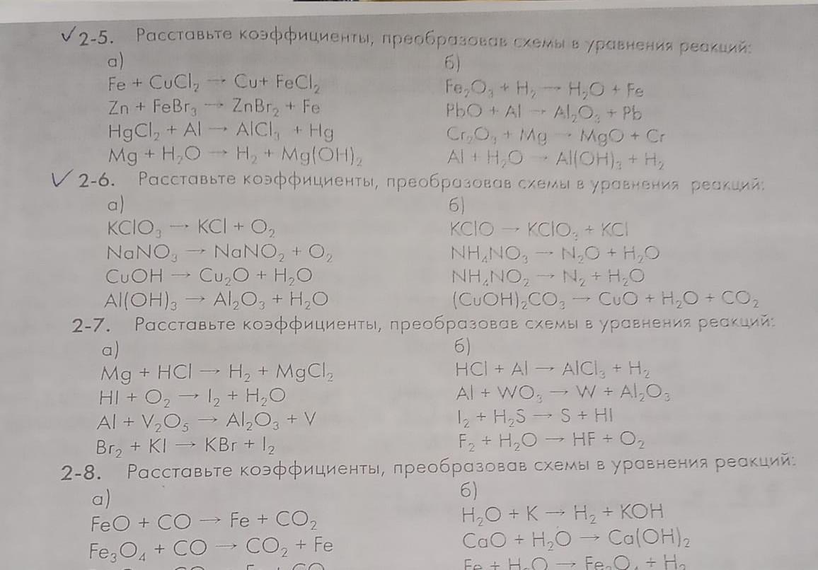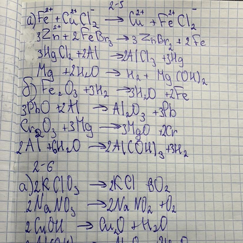 б) Fe2O3 + 3H2 = 3H2O + 2Fe