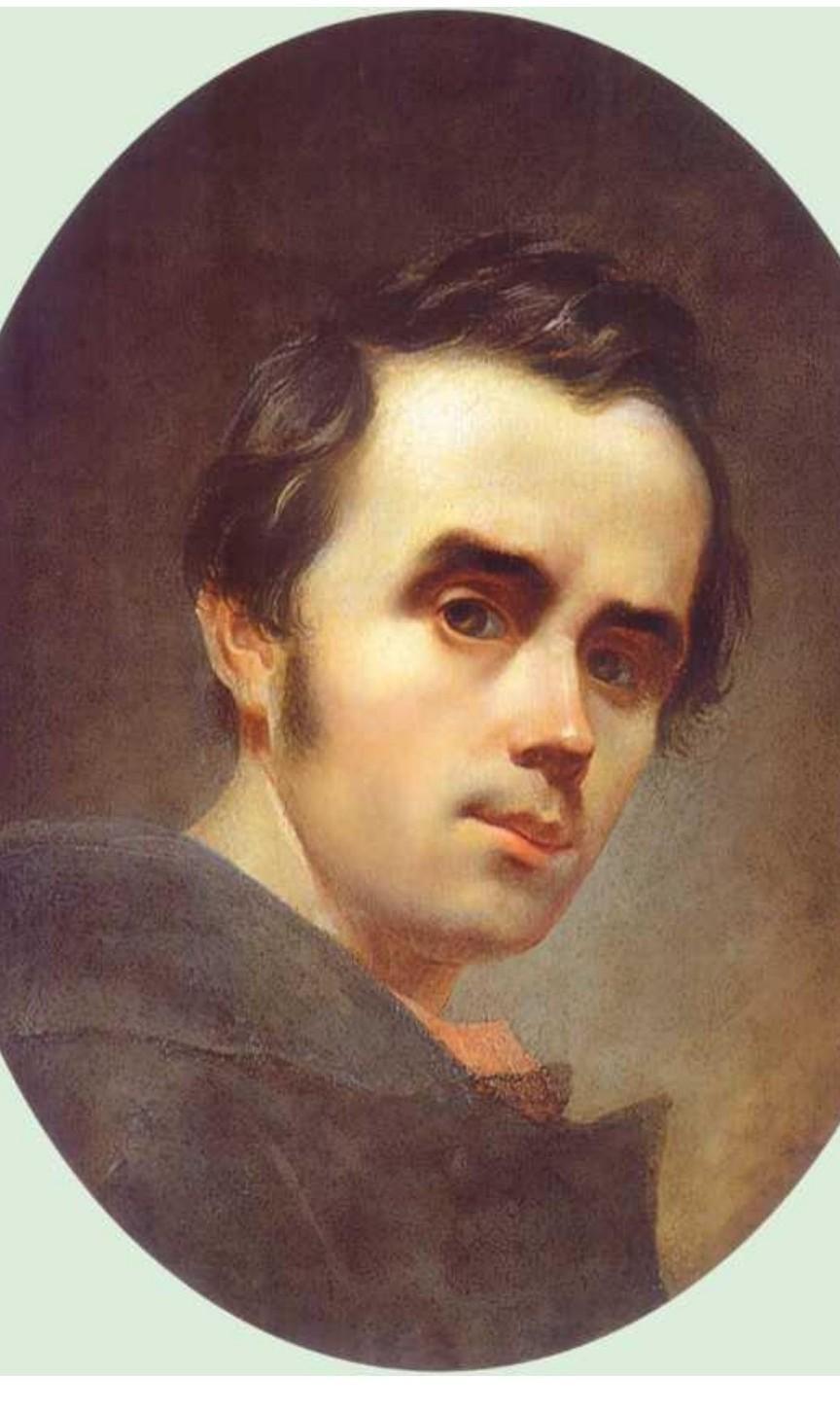 Великий український поет Тарас Григорович Шевченко був ще й талановитим художником. Він любив малювати з дитинства, а після визволення з кріпацтва навчався в Петербурзькій Академії Мистецтв.Ми бачимо молоде обличчя з високим чолом, обрамленим темним волоссям. Світло падає на обличчя і на чоло, підкреслюючи, що перед нами талановита творча особистість.