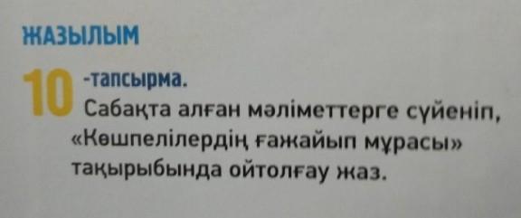 Көшпенділерден алғанымыз көп. Киіз үй, қолөнер, т.б.. Тіпті, бұрынғы ата-бабаларымыз деп те айта аламыз. Ата-бабаны зерттей отырып, біз өзімізді танимыз.Тарихты білмей-ақ, өзімізді кездейсоқтық деп тануымыз керек, дүниеге қалай және не үшін келгенімізді, онда қалай және не үшін өмір сүріп жатқанымызды, қалай және неге ұмтылу керектігін білмейміз. . Біз тәуелсіз мемлекетте өмір сүріп жатырмыз, бұл ата-бабамыздың ерен еңбегі. Қазір Қазақстан гүлденген жас мемлекет. Өткен ұрпақ бізді жаратты, ойымызды, сезімімізді адамдық даналықтың биігіне көтерді. Сондықтан біз өз дүниемізді қорғауымыз керек, өйткені біз мұның бәрін бұрынғы ата-бабаларымыздан алғанбыз.