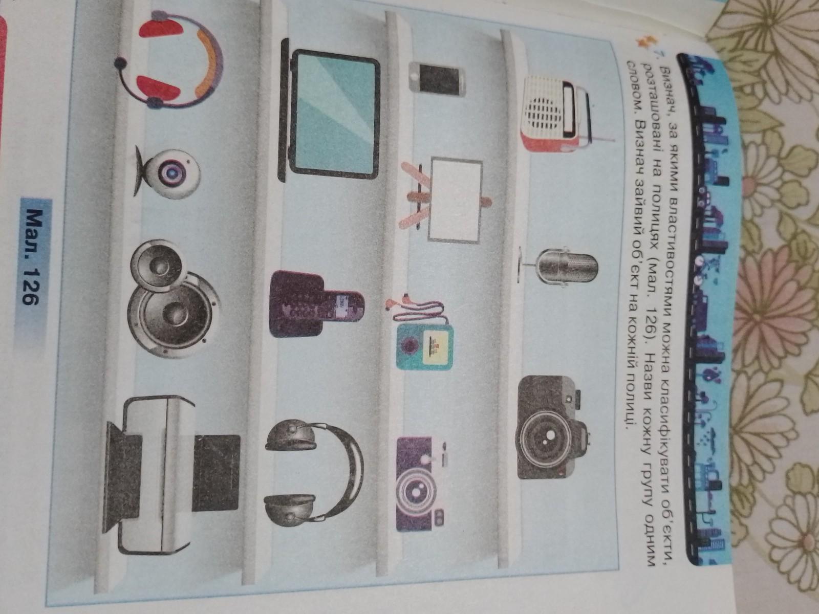 Ответ: 1. Зайве тут радіо. 2. Зайвий тут мольберт. 3. навушники зайві. 4. Зайвий принтер.