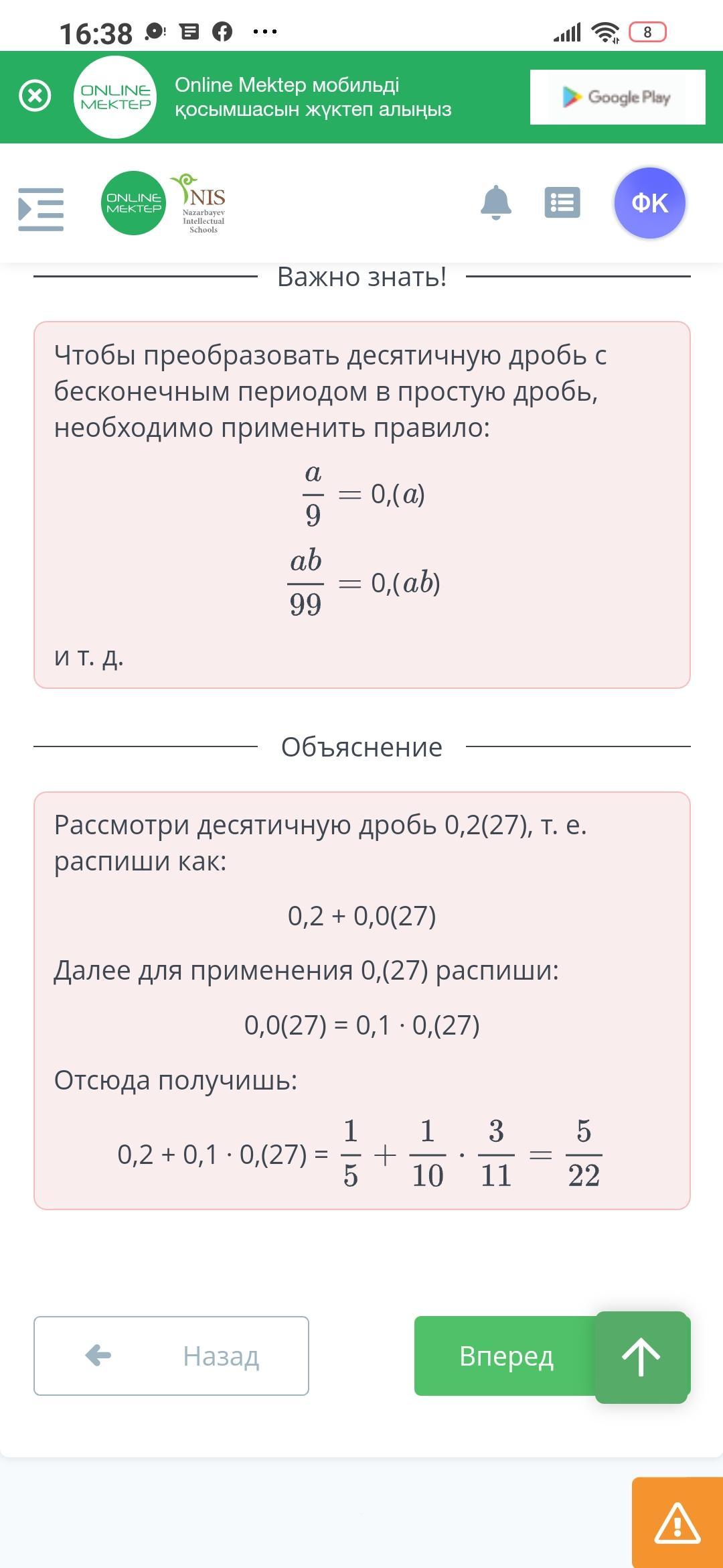 Если известно, что 0, (27) = 3/11, преобразуйте десятичную дробь периода 0,2 (72) в простую дробь: