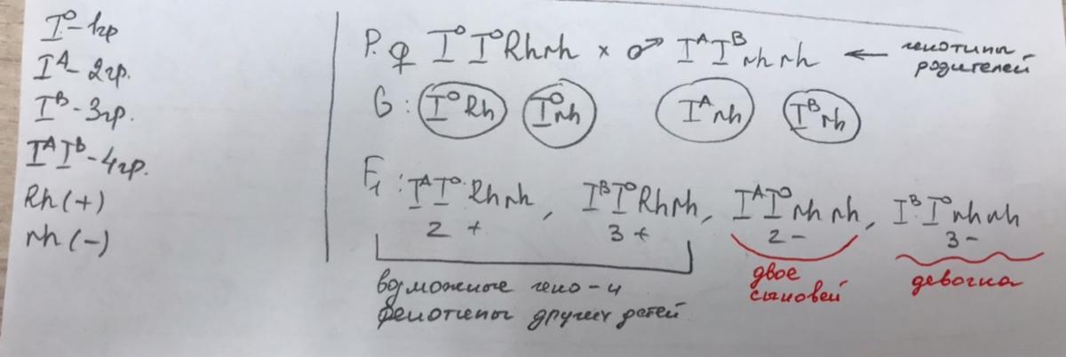 Bідомо, шо мати резус-негативної дівчинки з 3 групою крові була резус-позитивною з 1 групою. У двох синів кров 2 групи резус-негативна. Який гено-та фенотипи батыка за групою крові та Rh-фактором?