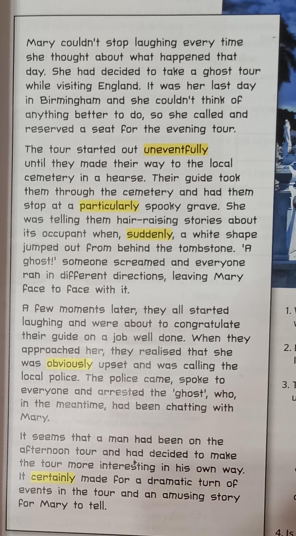 1 The people on the tour thought that "the ghost" was part of the tour and his appearance had been planned before.