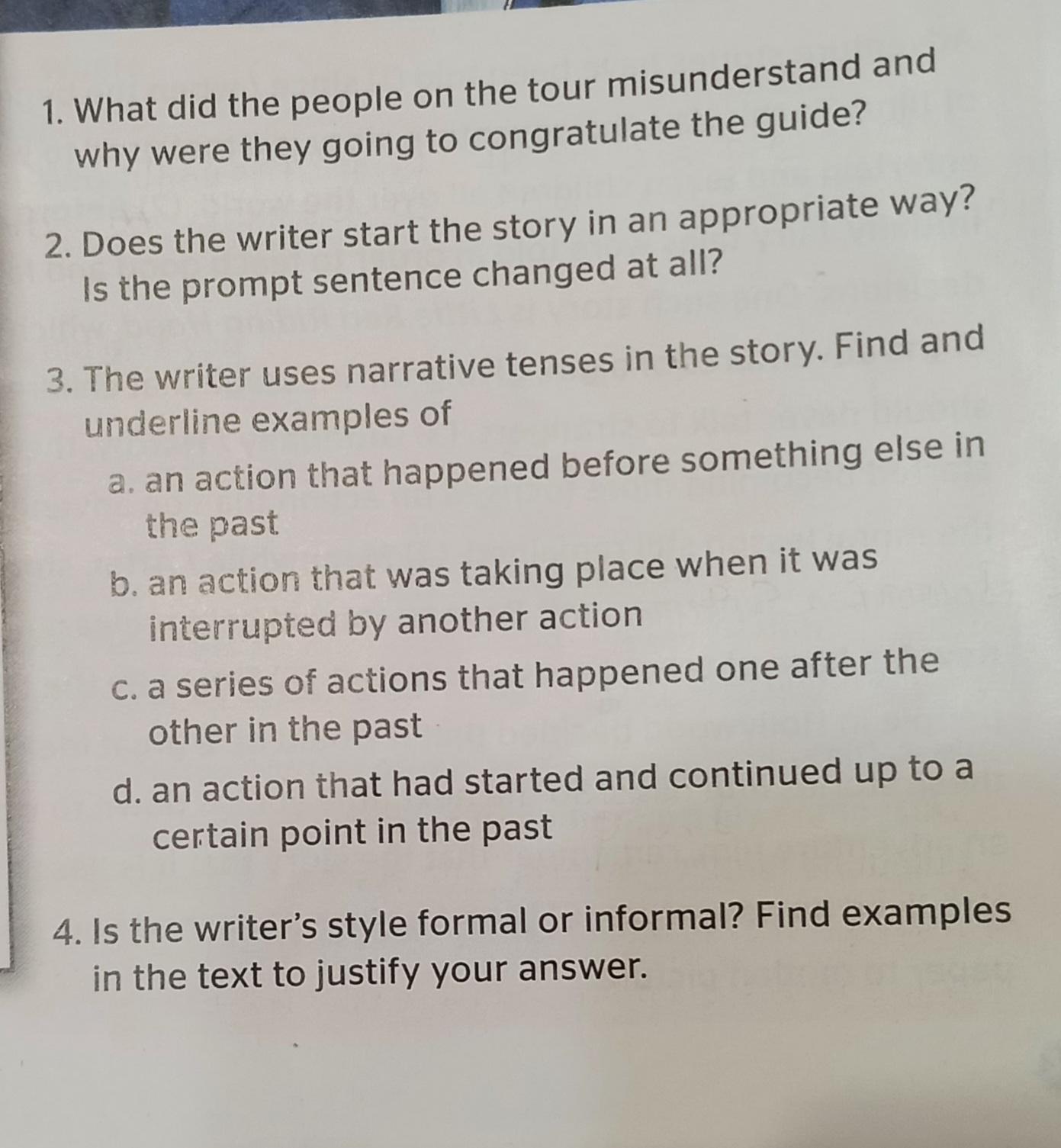 3 a) had decided to take..., had been chatting.., had been on the afternoon tour...had decided to make...