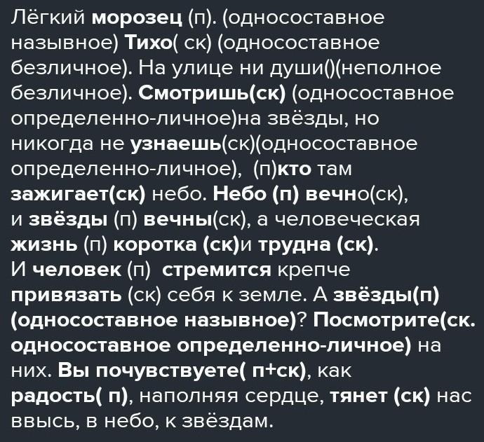 ПОМОГИТЕ СРОЧНООО!!!!!!!Подчеркните главные члены предложения, укажите вид односоставных предложений. Тихо. На улице ни души. Смотришь на звёзды, но никогда не узнаешь, кто там зажигает небо. Небо вечно, и звёзды вечны, а человеческая жизнь коротка и труд на. И человек стремится крепче привязать себя к земле. А звёзды? Посмотрите на них. Вы почувствуете, как радость, наполняя сердце, тянет вас ввысь, в небо, к звёздам.