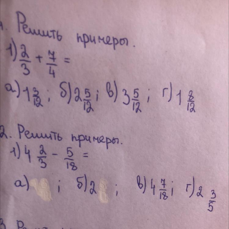 1) 2/3+7/4=8/12+21/12=29/12=2 5/12