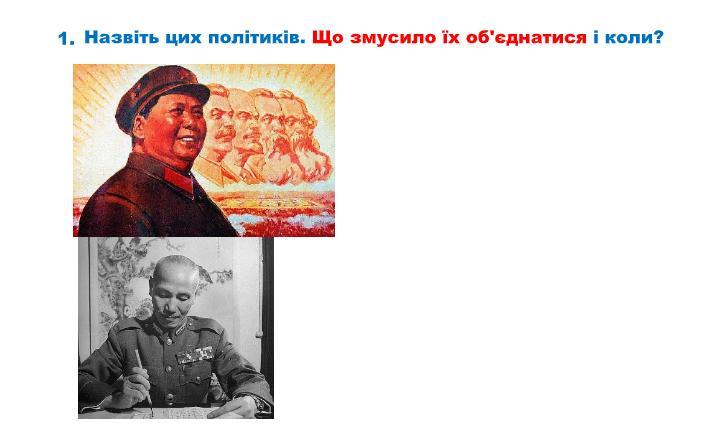 Помогите. .. Скажите кто на фото? Если Мао Цзэдун и Чан Кайши то Почему объединились ...