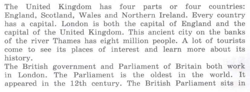 The UK has four contries: England, Scotland, Wales and Northern Ireland. A lot of tourists come to see UK places of interest and learn more about it's history.