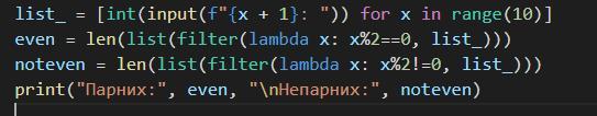 Написати програму, яка вводить клавіатури 10 дійсних чисел, а потім визначає кількість парних і кількість непарних елементів масиву.