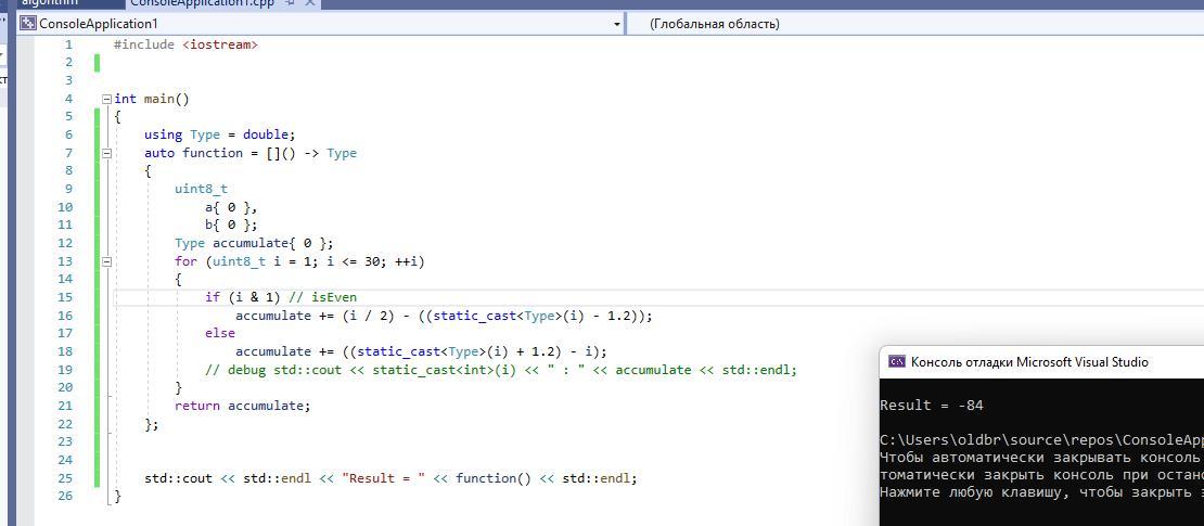 accumulate += (i / 2) - ((static_cast<Type>(i) - 1.2));