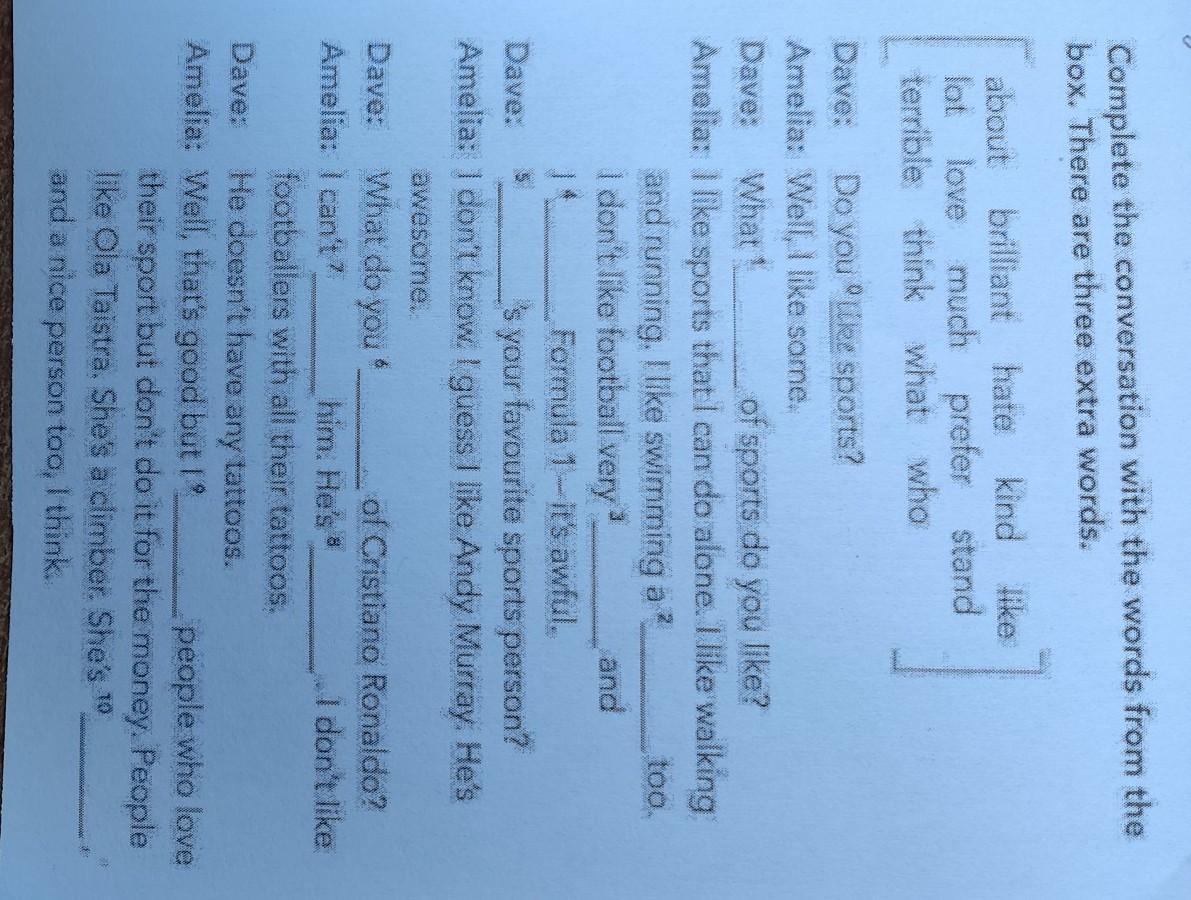 Amelia: I can't stand him. He's terrible. I don't like footballers woth all their tattoos.