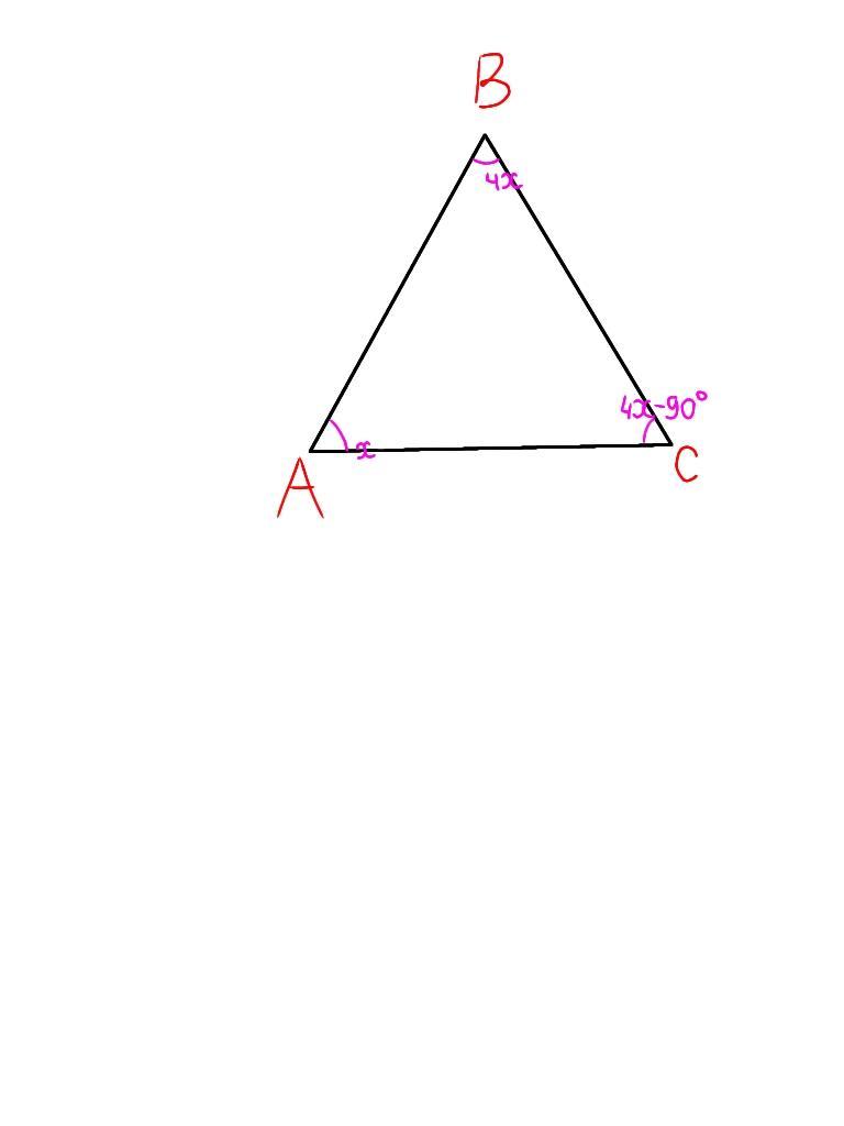 х+4х+(4х-90) = 180 (по сумме углов треугольника)