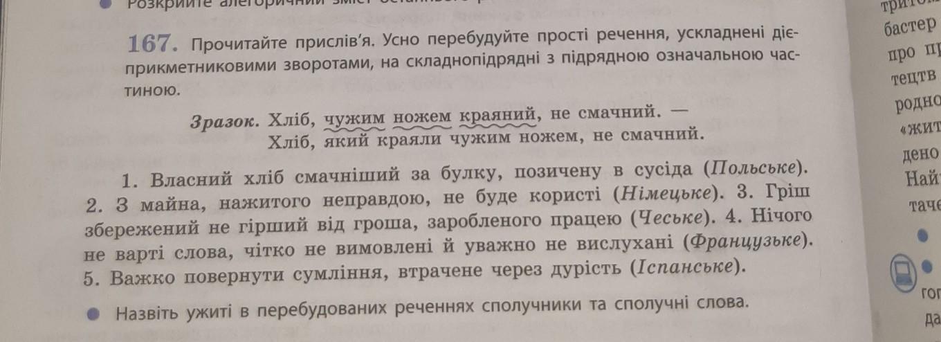 Відповідь: 1....., яку позичили в сусіда. 2. ..... ,яке нажили неправдою,....3. ......, який заробили працею. 4. ...., які чітко не вимовили і уважно не вислухали. 5. ......,яке втратили через дурість.