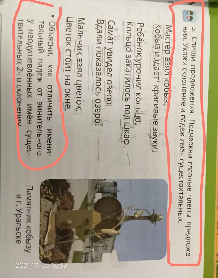 1. Спиши предложения. Подчеркни главные члены предложе- Ния. Укажи склонение и падеж имён существительных. 2.Объясни, как Отличить имени- тельный падеж от винительного у неодушевлённых имён сущес- твительных 2-го склонения.