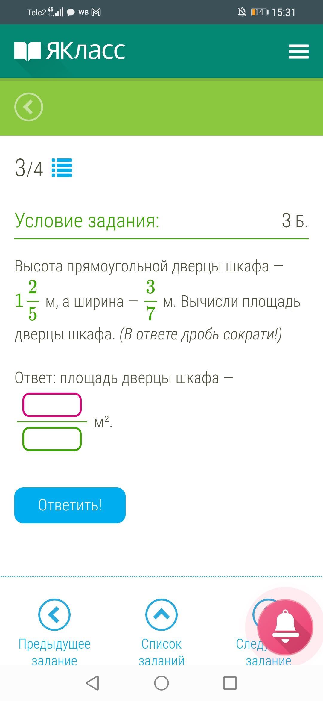 S=1 2/5*3/7=7/5*3/7=3/5(7сократились)