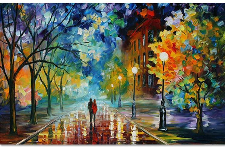 На картине изображена красивая золотая осень. Стиль этой картины, словно золото, очень яркий. Люди идут по длинной тропе, в такой чудесный вечер. Фонари светят и освещают красивые деревья. Листья падают и вызывают словно маленькую картину на земле. (не 8-9 предложений, но хоть что то :( )
