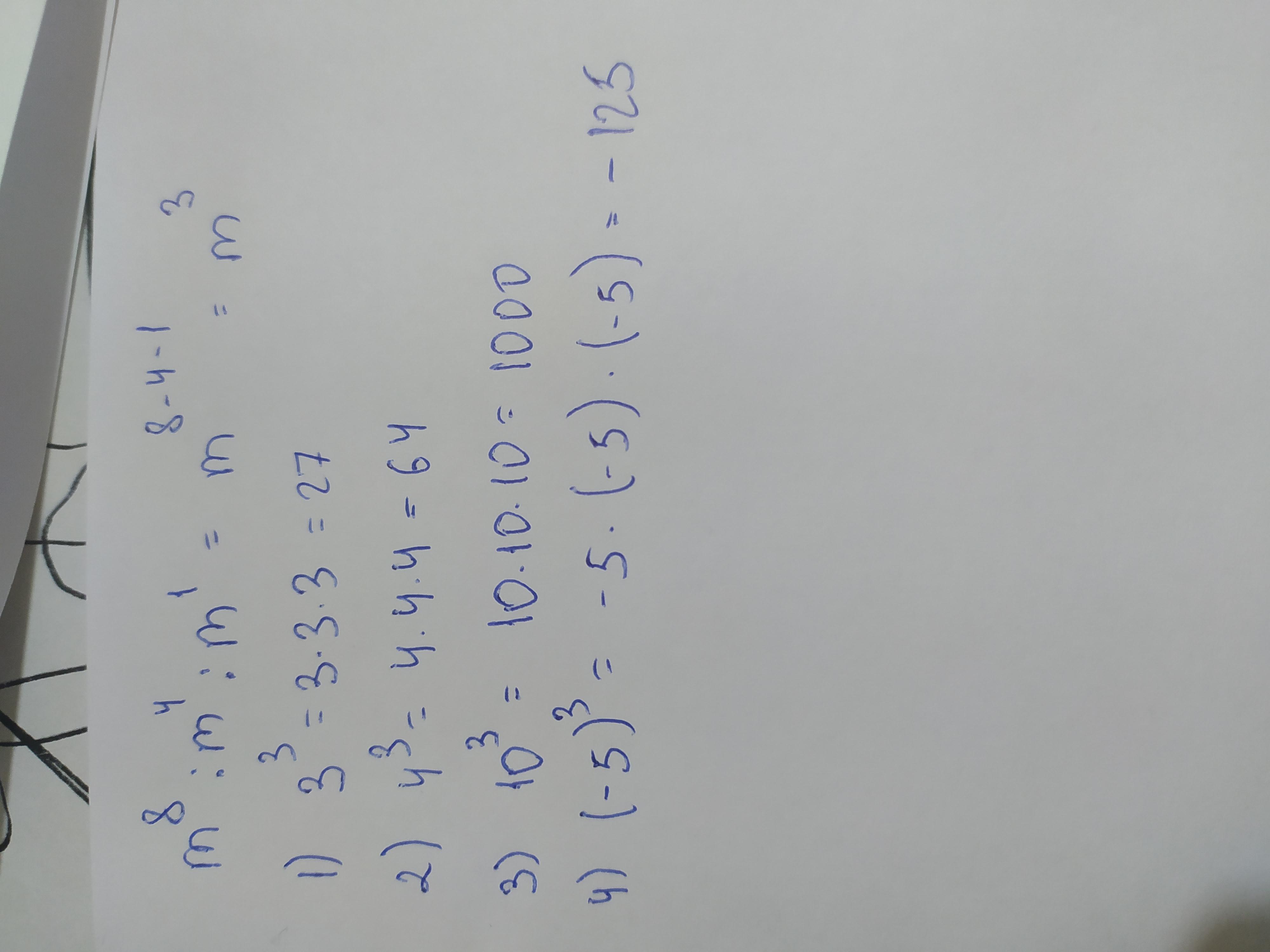 Напишите выражение m⁸:m⁴:m в виде степени и вычислите его при 1) m=3 2) m=4; 3) m=10; 4) m=-5.​