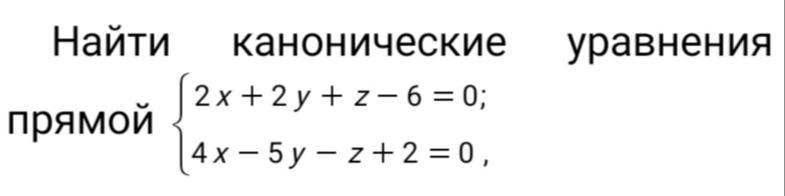 Записать канонические уравнения прямой d:{█(2x+2y+z-6=0@4x-5y-z+2=0)┤