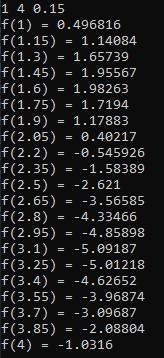 Составить программу вычисления значений функции y = f (x) на промежутке a, b с шагом h (на языке C++):