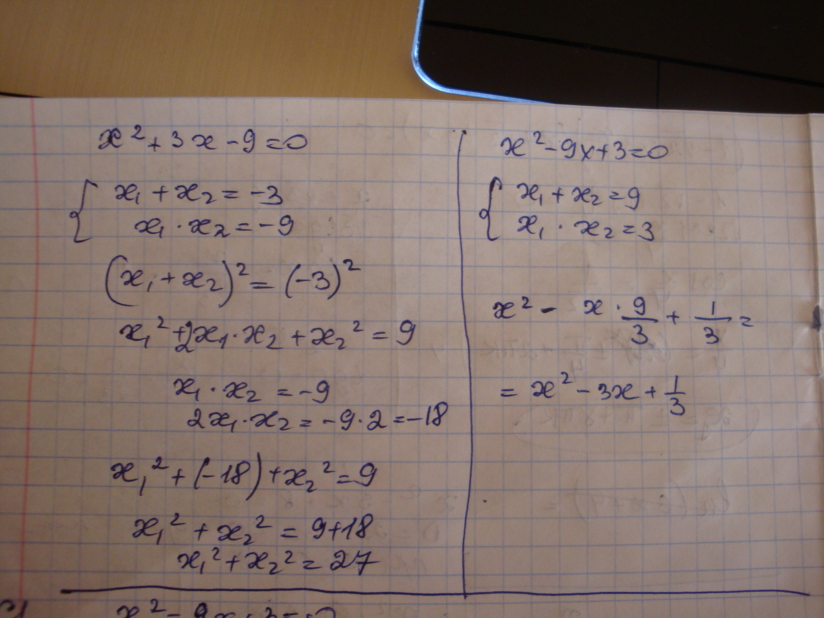 x1²+x2²=(x1+x2)²-2x1x2=(-3)²-2*(-9)=9+18=27