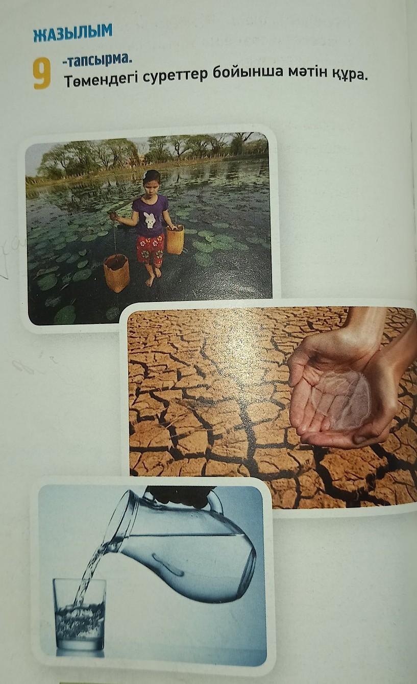 ЖАЗЫЛЫМ 9-тапсырма. Төмендегі суреттер бойынша мәтін құра. можно срочно ещё с переводом