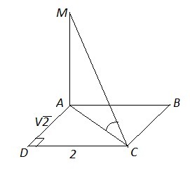 перпендикуляром к плоскости прямоугольника АВСD. Угол между прямой МС и этой плоскостью равен 30, AD= корень из 2, CD = 2. Найдите АМ.