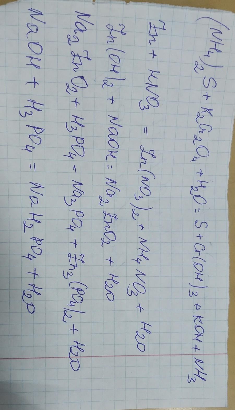 1) 3(NH4)2S + K2Cr2O7 + H2O → 3S + 2Cr(OH)3 + 2KOH + 6NH3