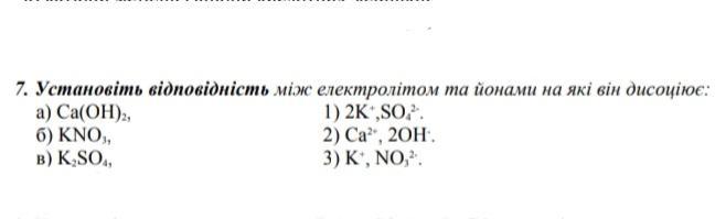 Поможіть::Установіть відповіднфсть між електролітом та йонами на які він дисоціює